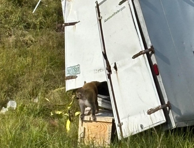 이 트럭은 루이지애나주 뉴올리언스 툴레인대학교 실험실 소속 원숭이들을 플로리다주의 다른 연구기관으로 이동 중이었다.