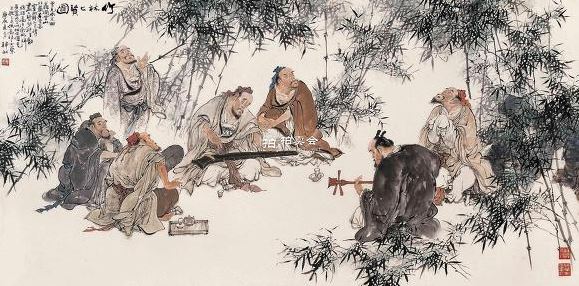 중국 진(晋)나라 때의 청담가(淸談家)(속되지 않은 맑고 고상한 이야기를 하는 사람.)들 7인을 말하는데, 즉 완적(阮籍), 혜강(嵇康), 완함(阮咸), 산도(山濤), 왕융(王戎), 향수(向秀), 유영(劉彾). 등이 항상 죽림(竹林)에서 노닐며, <노자>(老子)와 <장자>(莊子)의 허무설(虛無說)을 즐기고 세속의 형식적 도덕을 배척(排斥)하며, 세상을 피하여 자신의 안락을 꾀하였는데, 허무설이란, ‘천지만물은 인식(認識)을 초월한 “하나”라는 본체(本體)에서 발생하는데, 그 본체는 형상이 없어 볼 수도 들을 수도 없는 허무(虛無)임.’ 또 <노자>의 도덕경(道德經)에도 말하기를 상식적인 인의(仁義)와 도덕에서 보다 무위(無爲)를 주장한 것으로, 만사를 포함하는 대도(大道)는 무위이며, 무위로 돌아가면 난리(亂離)도 없다고 하는 것입니다. 무위(無爲)란 자연 그대로 두어 인위(人爲)를 가하지 않음을 뜻합니다. 그들은 정치적 계절(季節)에 명철보신(明哲保身)하지 않으면 안 되는 중국의 사군사(士君士)들에게 하나의 상징적인 존재로서 전해 내려온 자 들입니다. 죽림칠현 중에서도 대표적인 인물이 <완적>(阮籍)(210- 263)인데, 위(魏)나라 사람으로 은자적(隱者的) 성격을 가장 진하게 가졌던 사람입니다. 문우 완우(阮瑀)의 아들로 정계(政界)에 절망하여, <노장>(老莊)(老子 와 莊子)과 신선(神仙)의 세계로 도피하여서, 음악과 정담(情談)으로 울적함을 달랬다. 형식적 예법에 반항하고, 방외(方外)의 선비는 청안(靑眼)으로 맞았으며, 예법의 선비는 백안(白眼)으로 맞았는데, 방외는 범위 밖의 세속사람을 말하고, 청안은 남을 좋은 마음으로 보는 눈이고, 백안은 노려보는 홀대하는 눈을 뜻합니다. <완함>(阮咸)은 <완적>의 조카로 진(晋)나라에 봉직하여 벼슬이 산기시랑(散騎侍郞)에 이르렀으나, 다른 현인(賢人)들과 시가(詩歌)를 즐겼으며, 속세를 버리고 벼슬을 거절하였다. 특히 음률에 뛰어난 재주가 있어 비파(琵琶)를 잘 뜯었다. 명악(明樂), 청악(淸樂)에 쓰이는 완함(비파와 비슷한 악기이름)이라는 비파는 그의 이름에서 유래된 것이라고 한다. 술대를 쓰지 않고 손가락으로 연주하는 것이 특색이라고 한다. <혜강>(嵆康)(223- 262) 위(魏)나라 사상가인데, 자유방자(自由放恣)한 성격으로 인하여 정계를 피하여 일민(逸民)(학문과 덕행이 있으면서도 세상에 나서지 않고 파묻혀 지내는 사람)이 되어, <노장>과 신선에 경도(傾倒)되었다. <완적>과 친교를 맺어 그들과 합류했으나, 여안(呂安)사건에 연류 되어, 형수와 간통이라는 무고를 받아 39세의 젊은 나이에 그만 사형을 당하고 말았다. 그러나 이들의 저항의지를 권력자들이 모를 리가 없었고, 결국 탄압받게 되면서 청담사상(淸談思想)은 저항의식을 상실하고, 2류 학자들의 얼치기 따라 하기로 인해 망가지면서 청담사상은 사실상 권력가의 취미 삼아 하는 헛소리 경연대회라고 볼 수 있는 공담(空談)으로 급격하게 변질 되어버렸다. 덕분에 청담사상은 위,진,남북조(魏晋南北朝)시대가 끝날 때까지 해악을 끼치게 되며, 공담을 즐기는 작자들이 자신들의 한탕놀음을 죽림칠현을 본 받은 것이 되고 말았다. 이에 후세의 평가까지 덩달아 떨어지는 불운을 겪게 된다. 이들은 혼자서 은거한 것이 아니라, 여럿이 모여서 단체행동을 했는데, 당대에 이름난 명사들이 모여서 은거(隱居)하며 세상에 이름을 알려 집단행동을 했다.