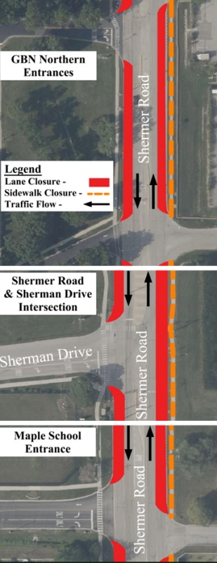 노스브룩 시는 셔머로드(Shermer Rd)에서 진행 중인 도로 공사가 올가을까지 이어질 예정이라고 밝혔다. 시 당국은 글렌브룩 노스 고등학교(Glenbrook North High School)와 메이플 중학교(Maple School)를 오가는 학부모와 학생들에게 교통 불편에 대비해 줄 것을 당부했다.