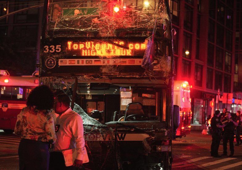 뉴욕 맨해턴서 2층 관광버스 추돌 70여명 부상