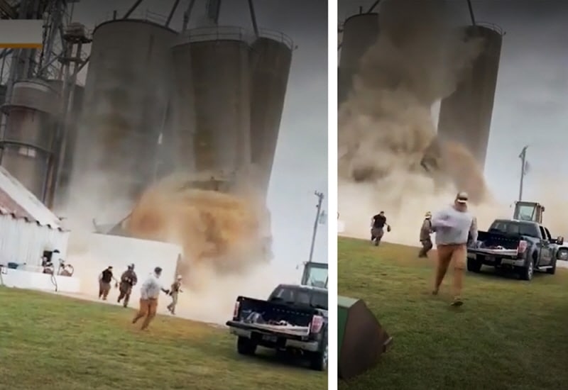 일리노이주 이로쿼이스 카운티에 위치한 마틴턴(Martinton)에서 곡물 저장탑이 붕괴되는 사고가 발생했다.