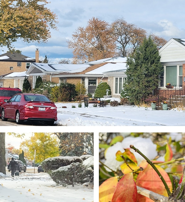 단풍이 거의 지는 무렵 시카고에 첫눈이 찾아왔다.