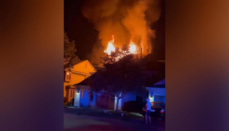 소방대원들은 현장에 도착해 지붕에서 거센 불길이 치솟는 2층 타운홈 단지를 발견했다.