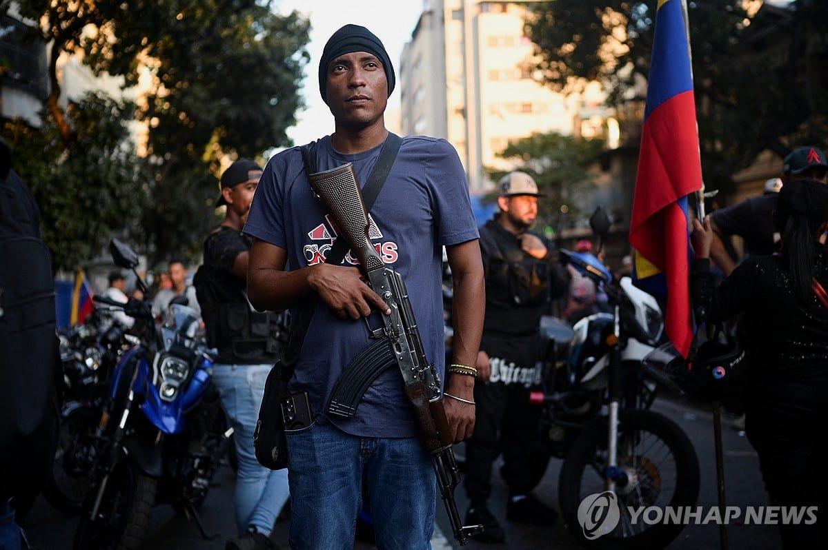 베네수엘라 임시정부, 비상사태 선포…소총 무장한 복면 민병대 활동