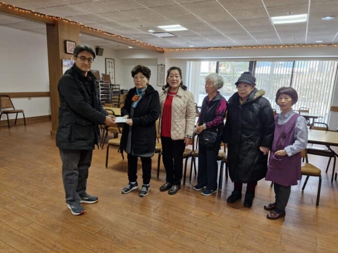 올네이션스교회 변해성 목사에게 행사 기금을 전달하고 있다. 사진 제공= 김경자 권사