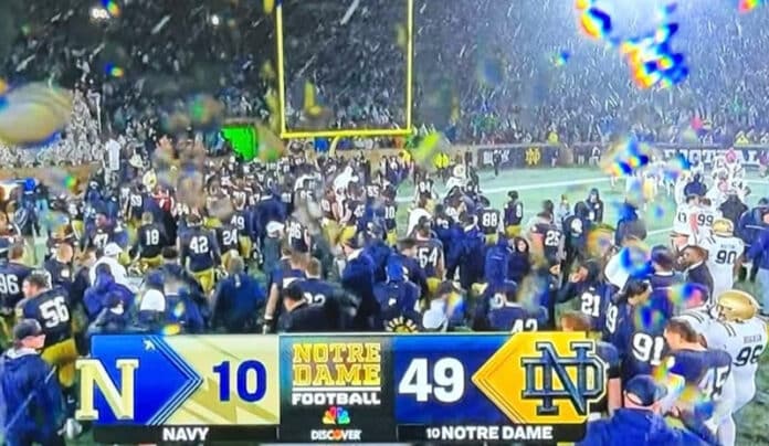 8일 경기에서 노터데임대는 해군사관학교 팀(Navy Midshipmen)을 49대 10으로 대파하며 시즌 7승 2패를 기록했다. 노터데임은 최근 7연승을 거두며 AP 9위에 올랐다.