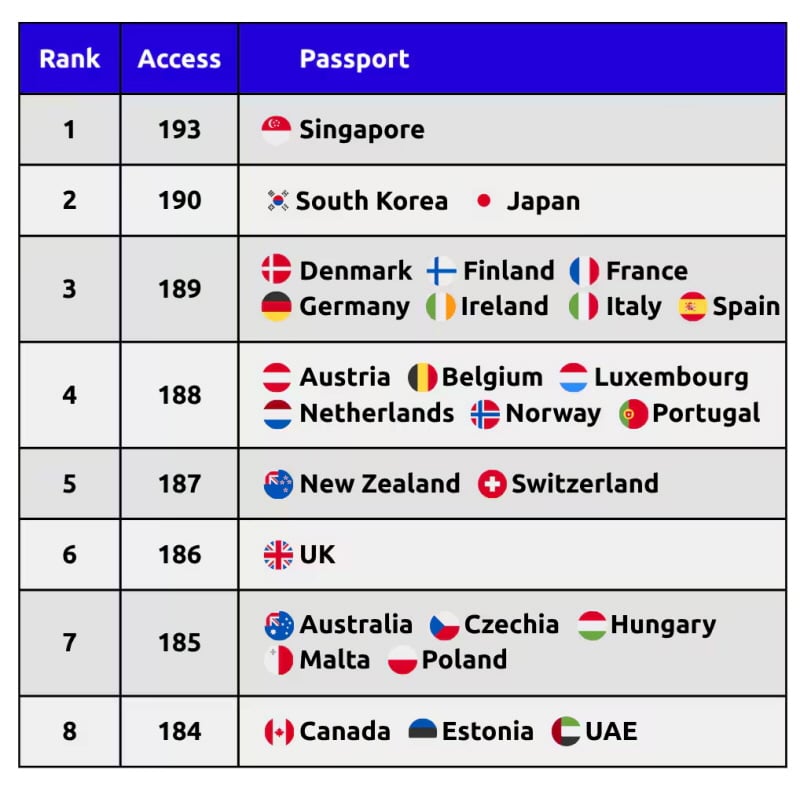헨리 여권 지수는 국제항공운송협회(IATA)의 데이터를 바탕으로, 전 세계 199개 여권을 분석해 얼마나 많은 나라에 비자 없이 들어갈 수 있는지를 비교해 순위를 매기는 지표다. 이 지수는 단순한 여행 편의성뿐 아니라, 해당 국가의 외교력과 글로벌 영향력을 반영하는 지표로도 평가된다.