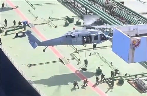 게시물에는 특수부대원으로 추정되는 병력이 헬리콥터를 타고 유조선에 승선하는 장면으로 추정되는 17초짜리 영상이 첨부됐다.