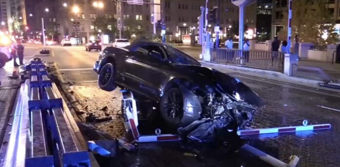 시카고 경찰에 따르면 사고는 밤 11시 34분경 발생했으며 현장에는 파손된 포드 머스탱 차량이 남아 있었다. 목격자 영상에 따르면 이 차량은 다리의 구조물과 신호등을 들이받았으며 차량 전면부는 심하게 파손된 상태였다.