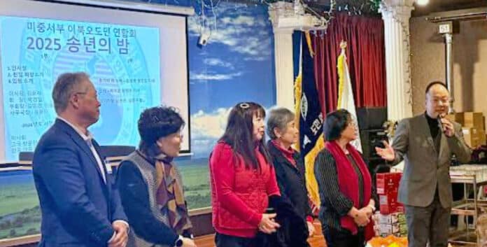미중서부이북오도민연합회(박건일 회장·김승자 이사장)의 ‘2025 연합 송년회’가 14일 나일스 소재 바베큐가든에서 열렸다. 97명이 참석한 이번 행사에서는 2026년도 연합회 활동 계획을 논의하고, 화합하는 시간을 가졌다.