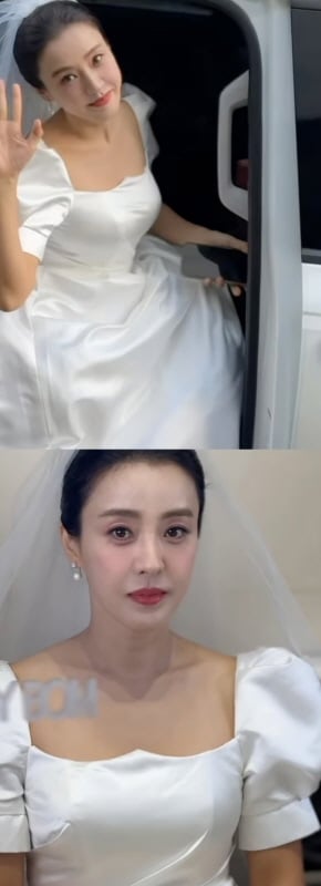 배우 박은혜가 웨딩 드레스 차림으로 직접 결혼을 발표했다.