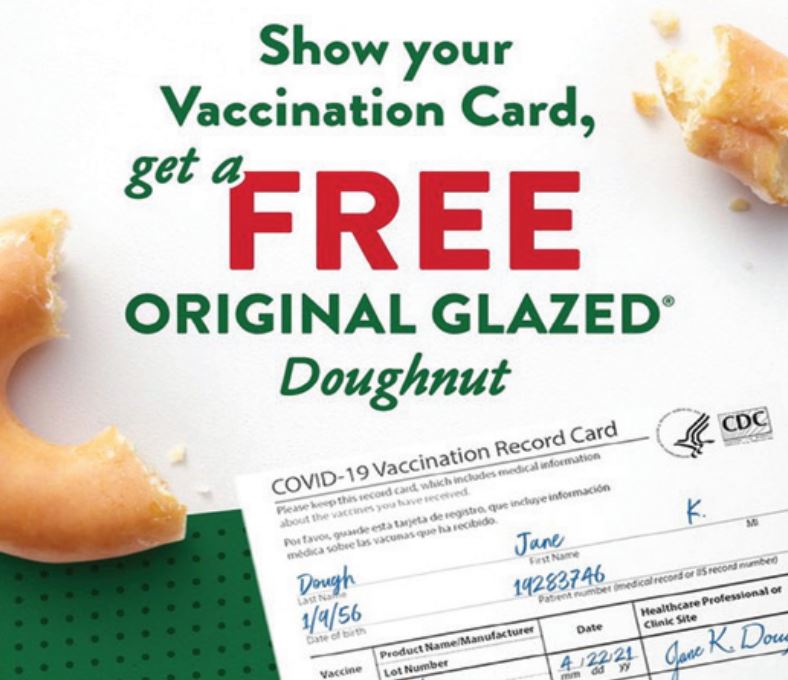 전국 인기 도넛체인인 크리스피 크림은 최근 코로나19 백신접종카드를 갖고 오는 고객에게 올해 말까지 무료 도넛을 제공하는 프로모션을 시작하며 큰 인기를 끌고 있다.