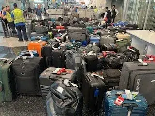 알려진 바에 따르면 유나이티드 항공의 승객 수하물이 처리되지 못해 오헤어 공항 터미널 2에 산 처럼 쌓이기 시작했다. 19일 세계적으로 항공편과 비즈니스에 영향을 미친 “전례 없는” 기술 장애로 인해 항공편이 지연되었다.