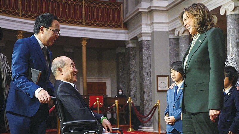 앤디 김 연방상원 의원은 이날 워싱턴 DC 연방 의사당 내 옛 상원회의장에서 카멀라 해리스 부통령 주재로 취임 선서를 했다. 그는 부인과 두 아들이 바로 옆에서 지켜보는 가운데, 왼손을 성경책에 대고, 오른손을 든 채 취임 선서를 했다. 또 앤디 김 의원의 부친 김정한씨도 휠체어를 탄 채 아들의 선서를 지켜봤고, 김 의원은 해리스 부통령에게 부친을 소개했다. 한국에서 어린 시절 건강상의 어려움(소아마비)과, 거주할 집도 없을 정도의 가난을 겪었던 김정한씨는 미국으로 이민와 MIT와 하버드대를 거치며 유전공학자로서 암과 알츠하이머 치료에 평생을 바친 입지전적 인물이다.