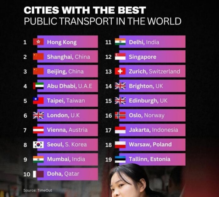 홍콩에 이어 상하이, 베이징, 아부다비, 타이베이, 런던, 비엔나가 상위 7위권에 올랐다. 서울도 세계적으로 대중교통 인프라가 잘 갖춰진 도시로 평가받지만, 이번 조사에서는 8위에 머물렀다.