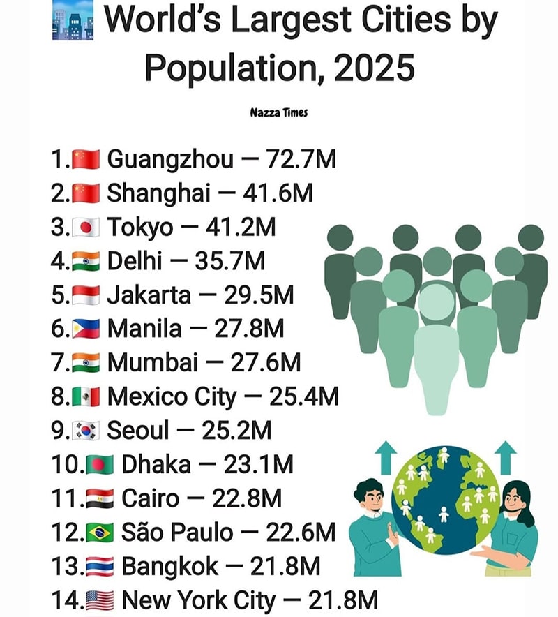 중국 광저우가 4,830만명으로 1위를 기록한 데 이어, 상하이는 4,160만명으로 2위에 올랐다. 그 뒤를 도쿄, 델리, 자카르타, 마닐라, 뭄바이, 멕시코시티가 잇따라 차지하며 8위권까지 구성했다.