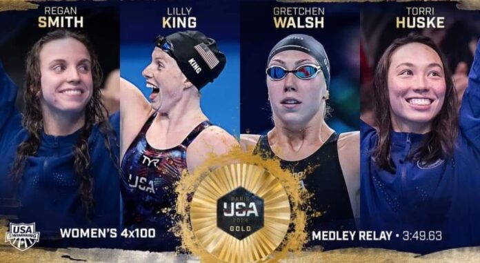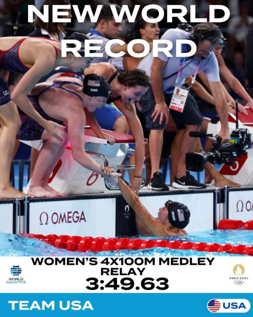 미국은 여자 수영에서 다시 세계 신기록을 작성했다.