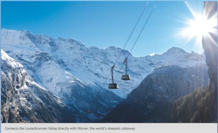 스위스 알프스에서 ‘세계에서 가장 가파른 케이블카 노선’이 가동을 개시했다고 미 CNN 등이 21일(현지시간) 보도했다.