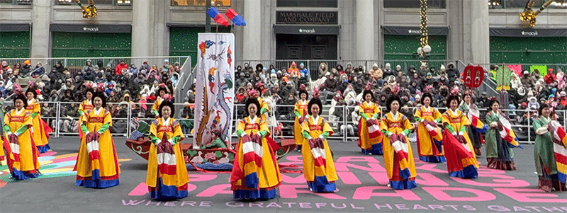 시카고 한국무용단(Chicago Korean Dance Company)이 11월 27일 열린 시카고 추수감사절 퍼레이드 오프닝 무대를 장식하며 한국 전통문화의 아름다움을 선보였다. 단원들은 궁중무용 ‘선유락’을 비롯해 검무, 부채춤, 민속 의상 등 다양한 전통 무용과 의상을 선보였다. 또한 인기 애니메이션 케이팝 데몬 헌터스 OST ‘골든’과 한국무용을 접목한 퍼포먼스로 색다른 감동을 전했다.