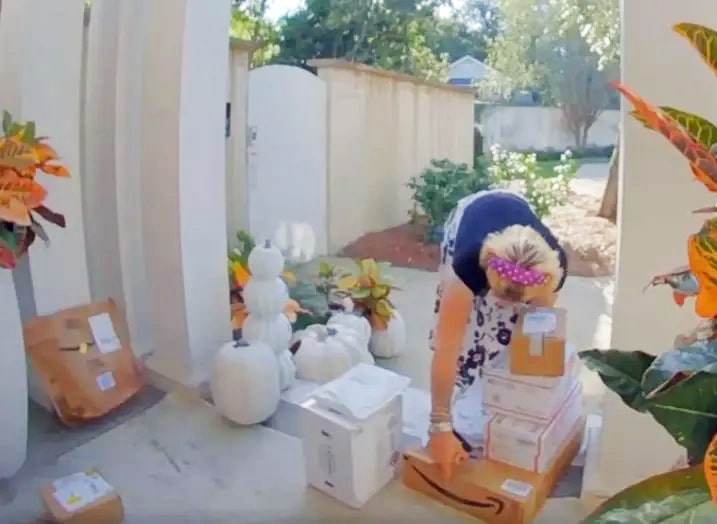 당국이 공개한 감시 영상에는 한 인물이 검정색 포드 이스케이프를 몰고 주택가에 도착해 전자담배를 한 모금 피운 뒤 현관 쪽으로 접근해 여러 개의 택배 상자를 들고 떠나는 장면이 담겼다. 용의자는 검은색 상의에 흑백 플로럴 스커트, 보라색 도트 무늬 머리띠를 착용한 모습이었다.