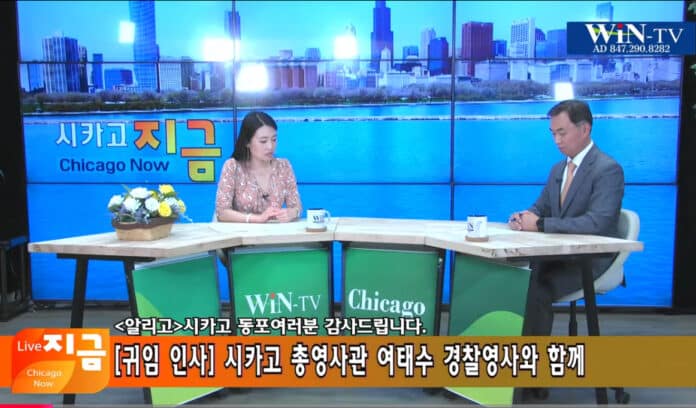 시카고 총영사관에서 3년여 임기를 마치고 귀임하는 여태수 경찰영사가 지난 9일 생방송 시카고 지금 스튜디오를 찾아 한인 동포사회에 작별 인사를 전했다.