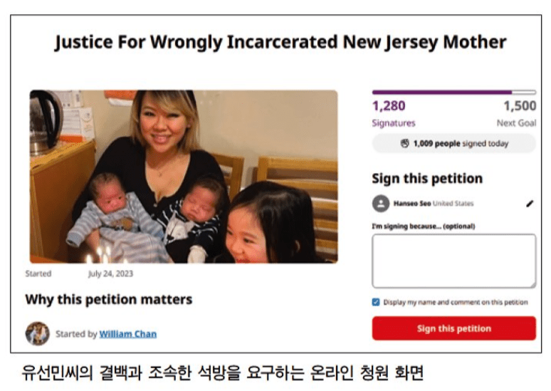 “억울한 누명을 쓰고 수감된 한인 엄마를 가족의 품으로 돌려보내주세요.”