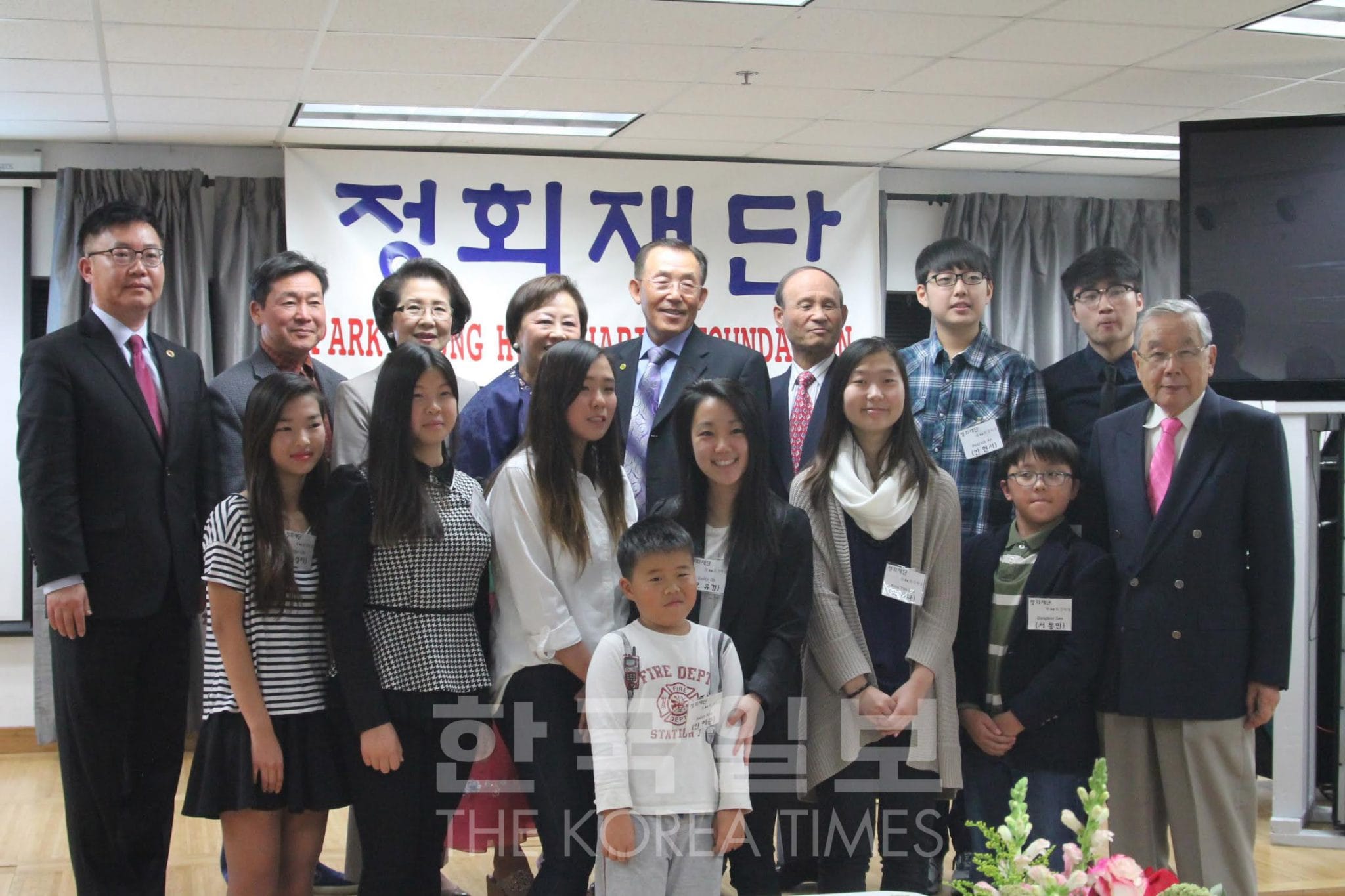 홀부모 가정 자녀를 우선 대상으로 장학금을 지원하는 정회재단(이사장 최창규)이 지난 17일 오후 윌링타운내 한인문화회관에서 ‘2015년 하반기 제24회 장학금 수여식’을 갖고 총 12의 장학생들에게 장학증서 및 각 1천달러의 장학금을 전달했다.