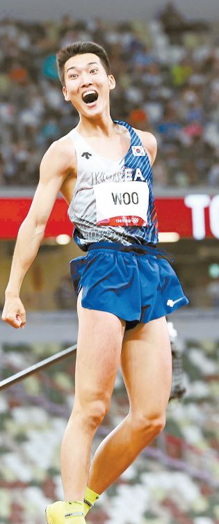 우상혁이 하늘 높이 날아올라 한국 육상의 새역사를 열었다.