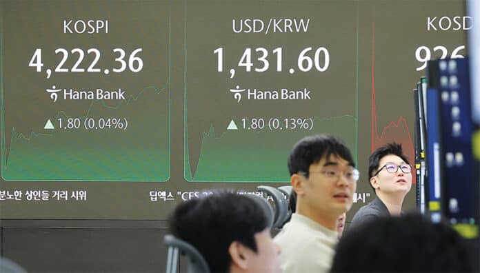 다만 비상계엄과 대통령 탄핵소추 등의 영향으로 한국 사회가 격변에 휩싸였던 1년 전 주간 거래 종가와 비교하면 33.0원 하락했다.