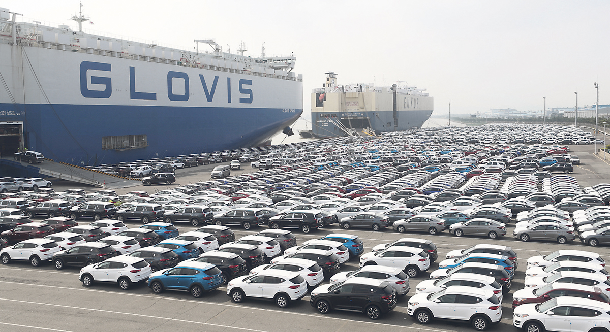 현대·기아자동차가 코로나19 위기속에서도 지난 1분기 글로벌 시장 점유율을 늘렸다. 현대 차량들이 해외 수출을 위해 선적을 기다리고 있다.[연합]