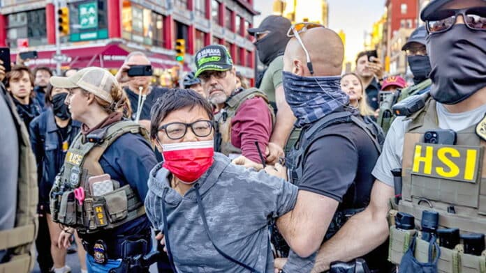이민세관단속국(ICE)이 지난 21일 뉴욕 차이나타운에서 위조 상품 판매 혐의로 노점상들을 급습하면서, 현장에서 시위대와 충돌이 벌어졌다.