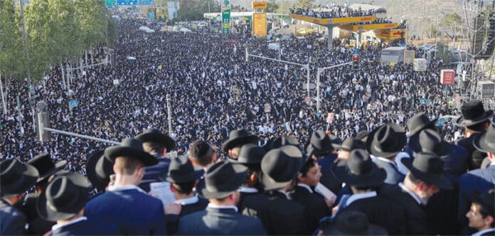 이스라엘 초정통파 유대교도인 ‘하레디’ 남성들이 지난달 30일(현지시간) 예루살렘에서 군 징집 반대 시위를 벌이고 있다. 주최 측에 따르면 이번 시위에는 약 20만 명이 모인 것으로 추산된다. 이스라엘 정부는 가자지구 전쟁 장기화로 병력이 부족해지자 지난해부터 하레디를 징집하기 시작했지만 하레디 지도층은 정통 유대교 학생들에게 입대 거부 지침을 내리는 등 반발하고 있다.