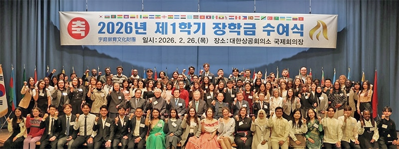 부영그룹 우정교육문화재단 이사장이기도 한 이 회장은 26일 서울시 중구 대한상공회의소에서 열린 ‘2026년 1학기 외국인 장학금 수여식’에서 32개국 외국인 유학생 102명에게 장학금 약 4억 8백만 원을 전달했다. 현재까지 45개국 2,847명의 유학생들이 누적 112억 원이 넘는 장학금을 받았다.