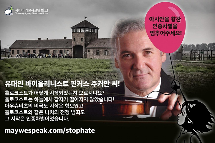 “주커만씨, 홀로코스트가 어떻게 시작됐는지 아는가. 아우슈비츠의 비극 시작은 혐오였고, 그같은 나치의 전쟁 범죄도 시작은 인종차별이었다”고 반크는 설명했다.