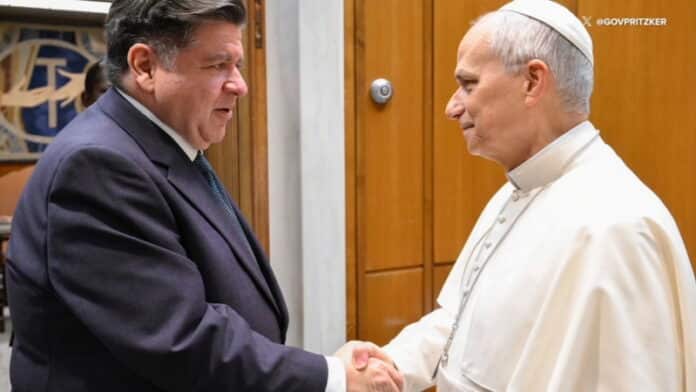 일리노이 JB 프리츠커 주지사가 11월 19일 바티칸에서 시카고 출신인 교황 레오 14세를 만났다.