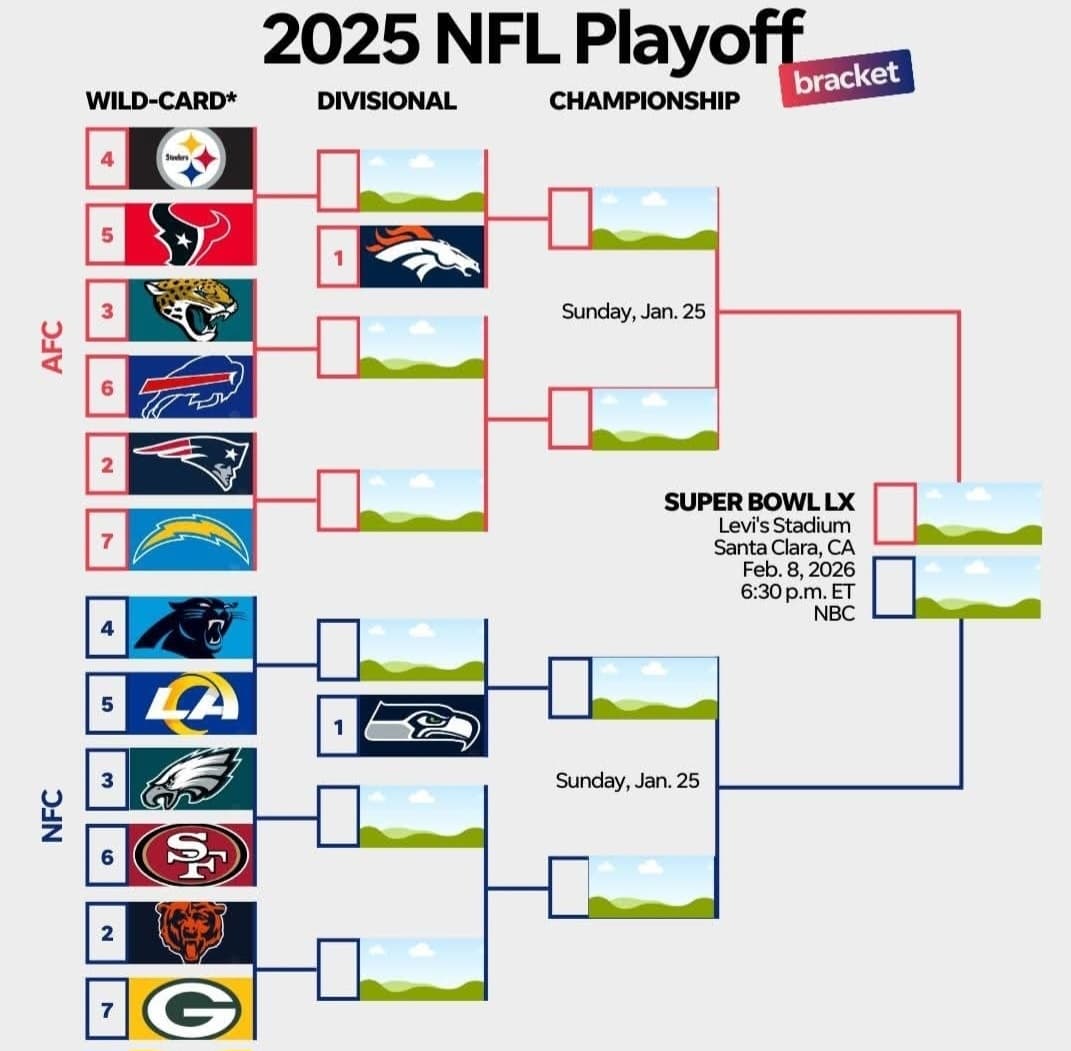 시애틀 시혹스는 수위여서 2차전 경기를 갖는데, 나머지 6개팀은 와일드카드 경기를 가진 후 3개 팀만 올라간다.
