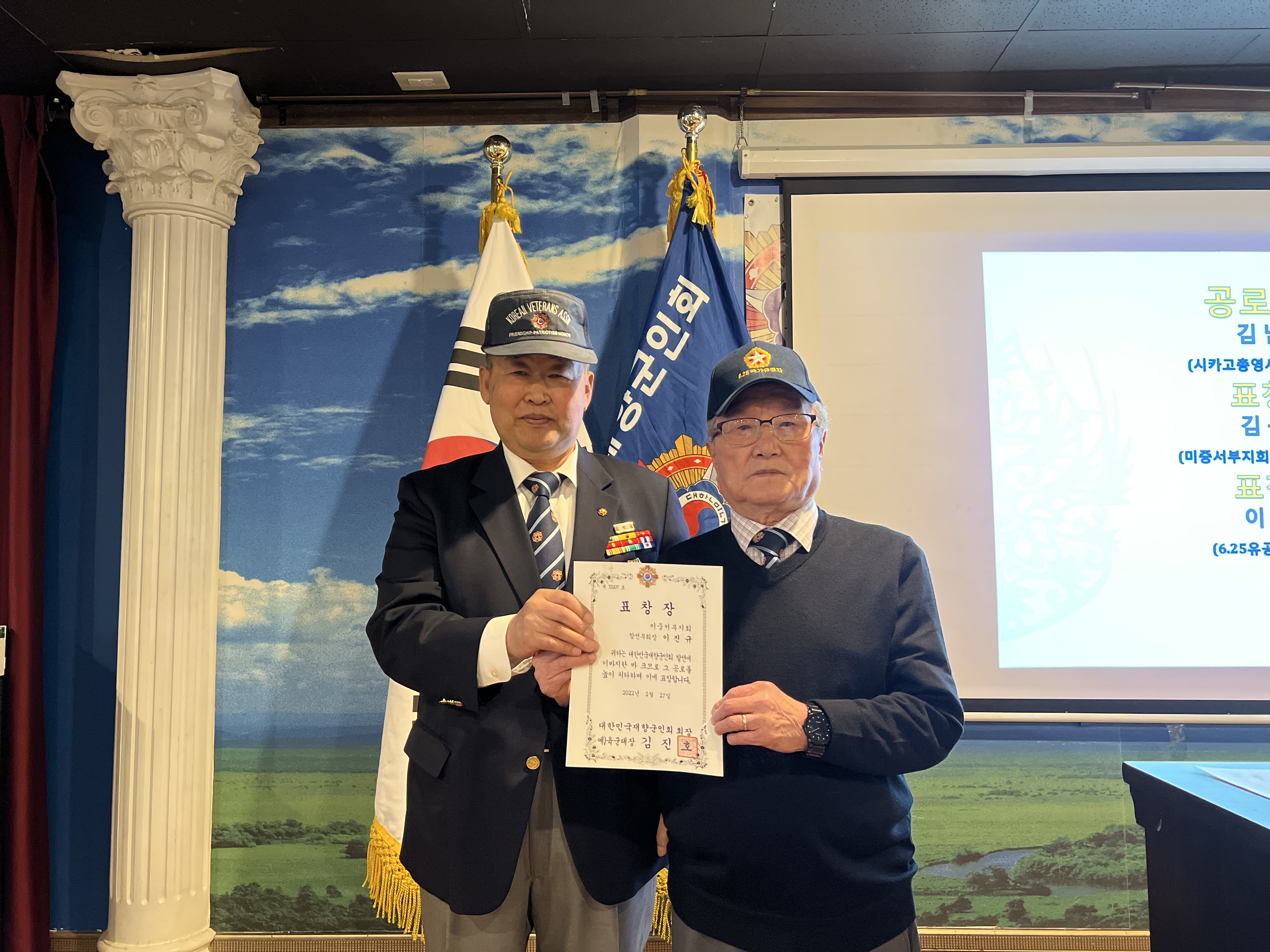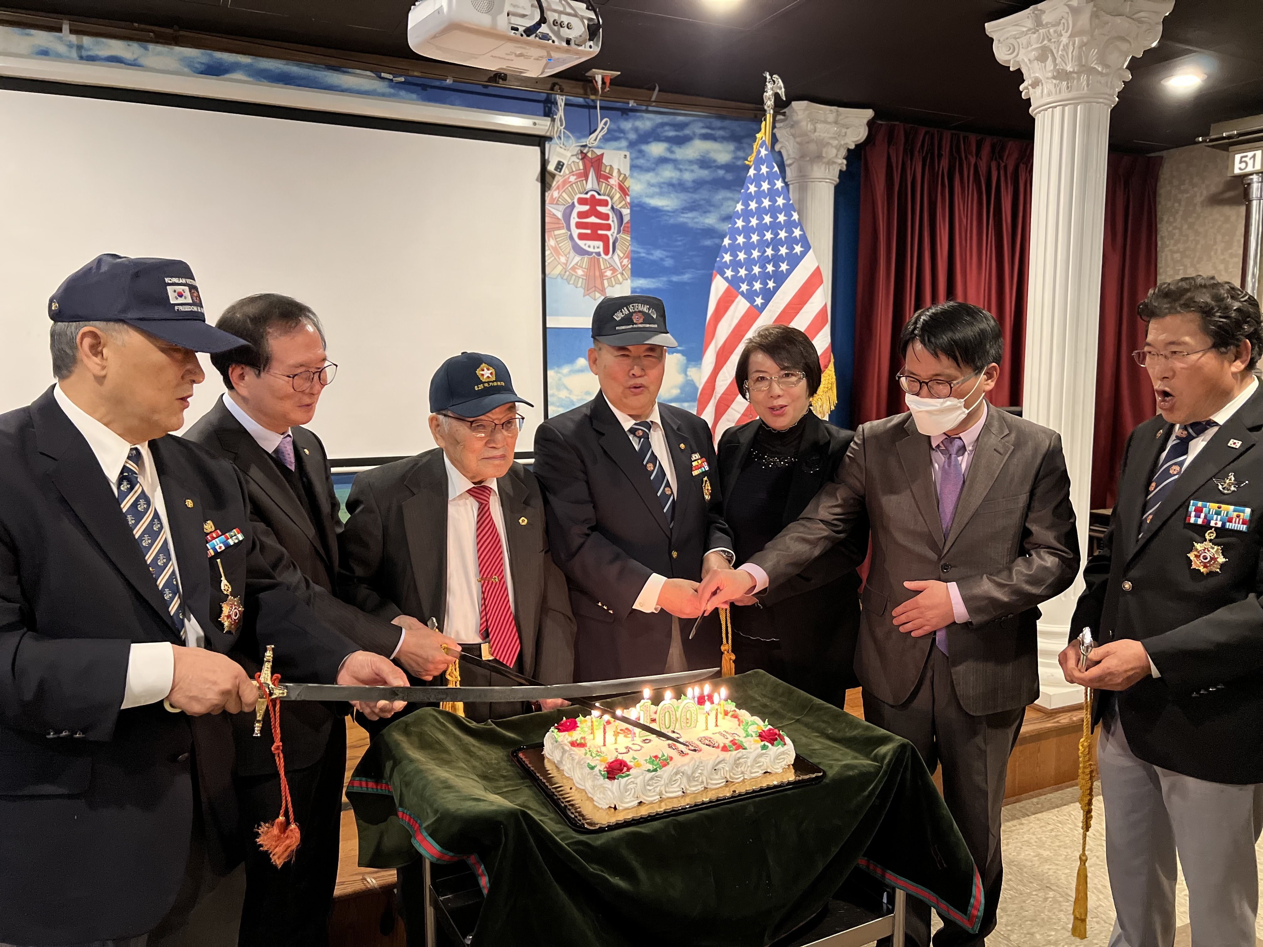 지난 27일 저녁 나일스 BBQ 가든에서 열린 정기총회는 50여 명이 참석해 성원 됐다. 총회 1부에서는 성원 보고, 개회선언, 의안상정 등이 진행됐다. 2부에서는 국민 의례, 향군인의 다짐 낭독(김욱종 안보부장), 포상(공로 휘장-김남진 시카고총영사관 영사, 표창장-김웅광(전 치과의사), 이진규(6.25 참전유공자회 부회장), 지휘권(지회기) 이양, 축사(최은주 시카고한인회장, 장병원 시카고부총영사, 이성배 시카고평통회장), 100세 축하케이크 절단 등이 이어졌다.