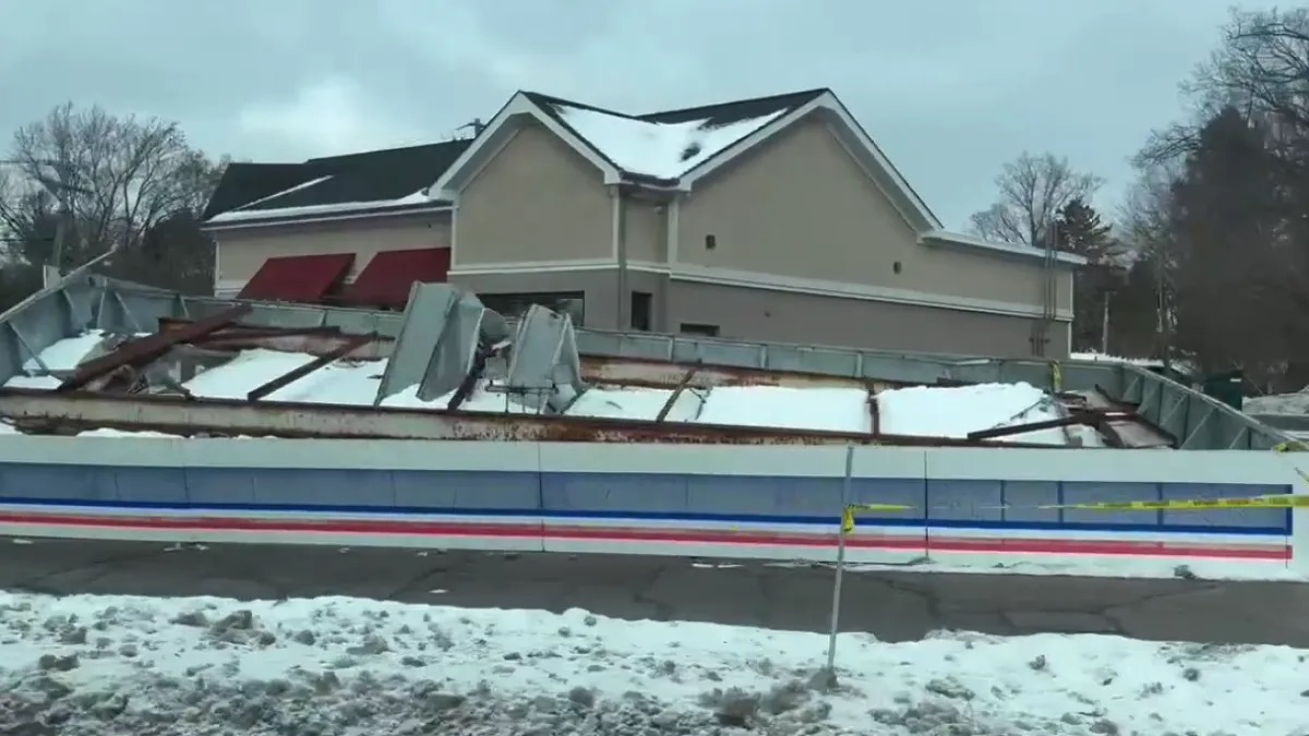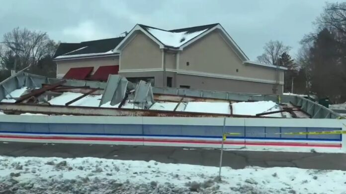 마라톤 주유소가 폭설로 인해 지붕이 무너져내리는 사고가 일어났다.