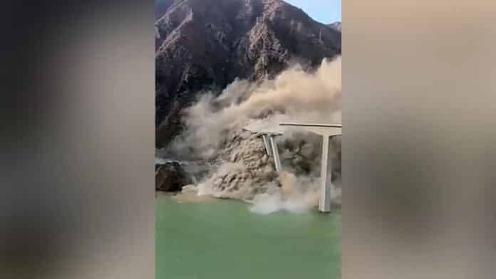 중국 남서부 수력발전소 인근의 홍치교가 개통 몇 달 만에 붕괴됐다. 이번 사고로 인한 인명 피해는 보고되지 않았다.