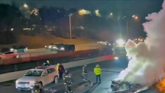 사고 여파로 고속도로 전 구간에 차량 파편이 흩어져 있고, 최소 1대의 차량이 도로 밖에서 불길에 휩싸였다. 화재가 진압된 뒤 공개된 영상에서는 최소 3대의 차량이 심하게 불에 타 검게 그을린 모습이 확인됐다.