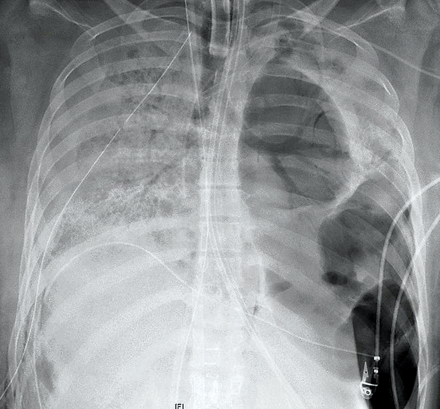 엑스레이에 나타난 폐에 구멍이 난 모습.