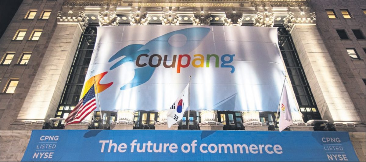 한국의 아마존 ‘쿠팡’이 미국 뉴욕증시에 성공적으로 데뷔했다. 쿠팡은 ‘CPNG’란 종목명으로 뉴욕증권거래소(NYSE)에 상장된 첫날인 11일 공모가 대비 40.71% 급등한 49.25달러에 거래를 마쳤으며 거래량은 9000만주였다.