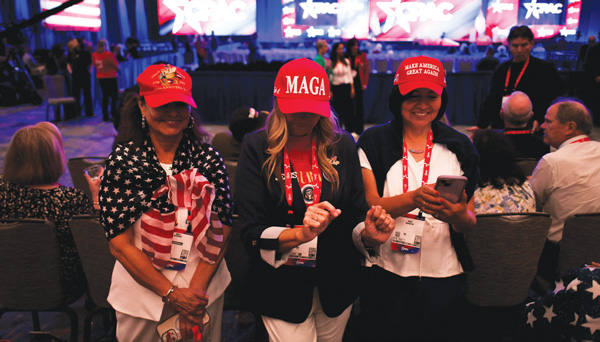 지난달 26일 열린 2026 보수정치행동회의(CPAC) 참가자들이 마가 모자를 쓰고 있다. [로이터]