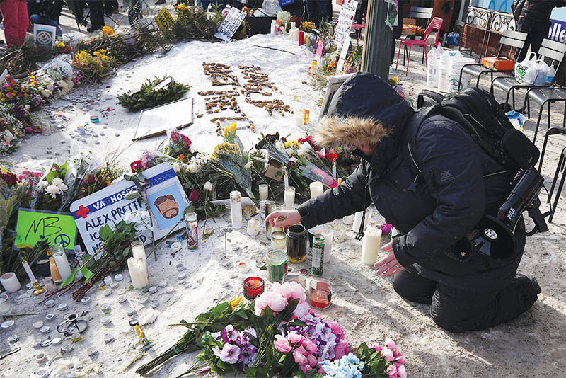 시민권자 알렉스 프레티가 연방요원 총격으로 사망한 미네소타주 미니애폴리스 현장에서 주민들이 그를 추모하고 있다. [로이터]