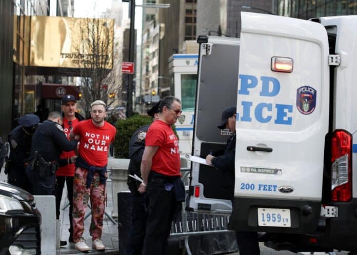 뉴욕 맨해튼 5번가의 트럼프 타워 로비를 점거하고 시위를 벌이던 98명이 지난 13일 경찰에 연행됐다. 이들은 팔레스타인을 지지하며, 하마스 테러에 대한 이스라엘의 군사 대응을 규탄하는 시위를 주도한 팔레스타인 학생 마흐무드 칼릴 구속을 반대한다는 주장을 하고 있다.
