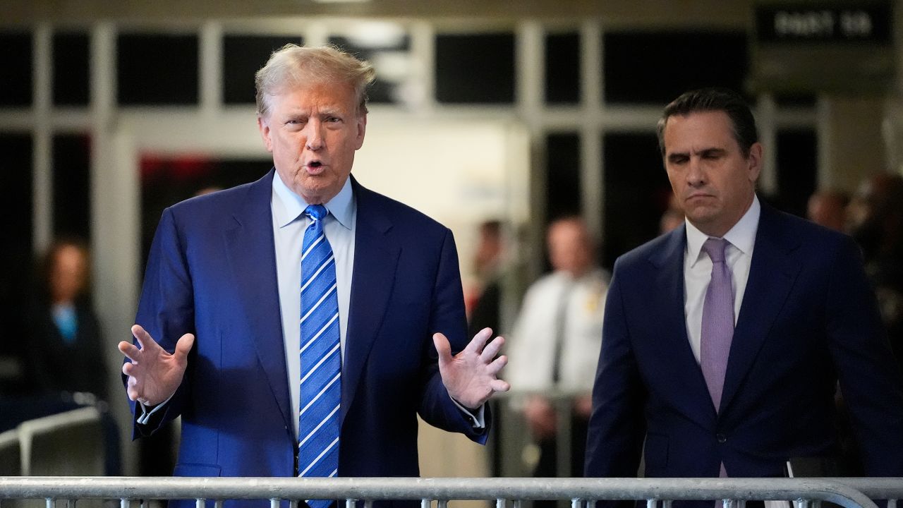트럼프 전 대통령은 이날 오전 9시 30분께 자신의 형사 재판이 열리는 뉴욕 맨해튼지방법원의 15층 법정에 도착했다.