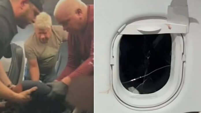 비행 도중에 한 남성 승객은 비행기 좌석과 창문을 두드려 깨는 등 난동을 부렸다.