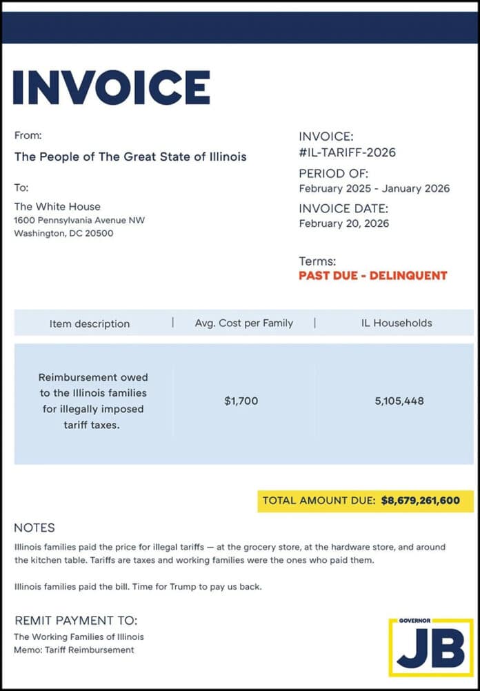 연방대법원이 도널드 트럼프 대통령의 광범위한 관세 부과 조치에 대해 위헌 판결을 내린 가운데, JB 프리츠커 일리노이 주지사가 백악관을 상대로 약 87억 달러에 달하는 대규모 환급 청구서를 발송했다.
