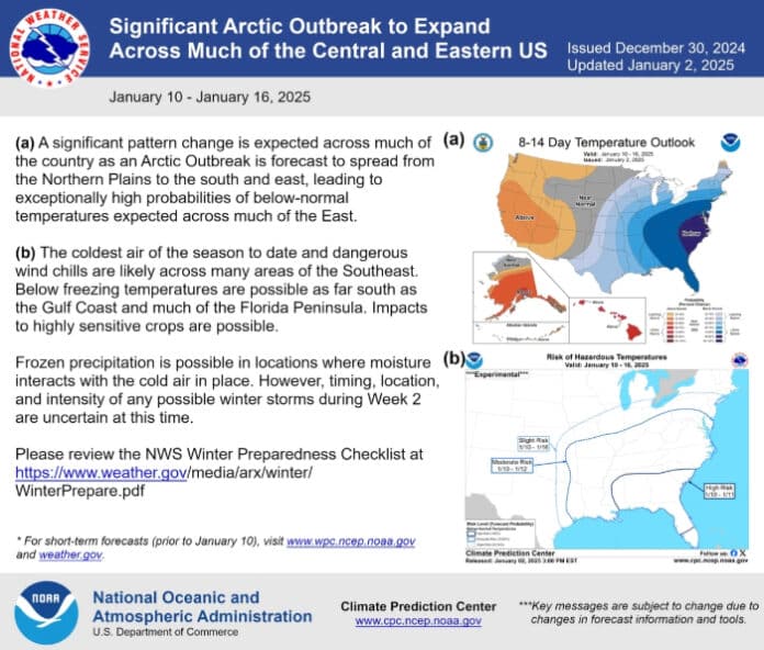플로리다를 포함한 미국 남동부에는 올 겨울 들어 가장 심한 한파와 찬 바람이 닥칠 것으로 전망되며, 가장 남쪽인 플로리다 반도에서도 영하로 내려가는 지역이 많을 것이라고 NWS는 경고했다.