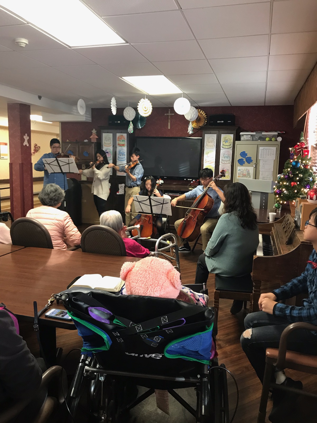 시카고시내 피터슨팍 요양원이 지난 23일 성탄행사를 열었다. 이날 순생명교회가 연장자들에게 동지팥죽을 대접했으며 주님의교회가 특별 공연을 펼쳤다.<사진=피터슨팍요양원>